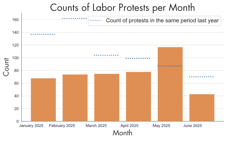 Every six months, we publish in-depth reports that combine protest data, testimonies, and legal developments with contextual analysis, highlighting trends and risks for workers.